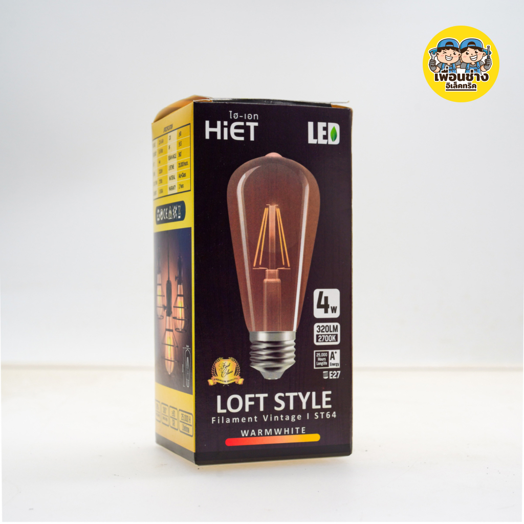 Hiet หลอดไฟ LED วินเทจ สีชา 4w ขั้วเกลียว E27 ไฟวินเทจ Filament vintage ST64